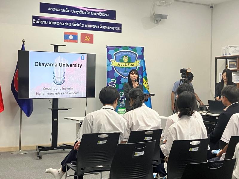 ラオスでは、LJIポンケオ・チャンタマリー所長らと留学生事情などについて懇談したほか、LJI日本留学フェアおよび現地高校のハークケオ学園では、留学説明会において本学の取り組みを発表し、留学を希望する学生への質疑応答を行いました。また、ラオス教育スポーツ省学生局やラオス国立大学デサヌラ・センドゥアンデ学長を表敬訪問しました。このほか、日本留学フェア会場ではJICA田中明彦理事長と面会するなど、通常業務の枠を超えた活動にも取り組みました。