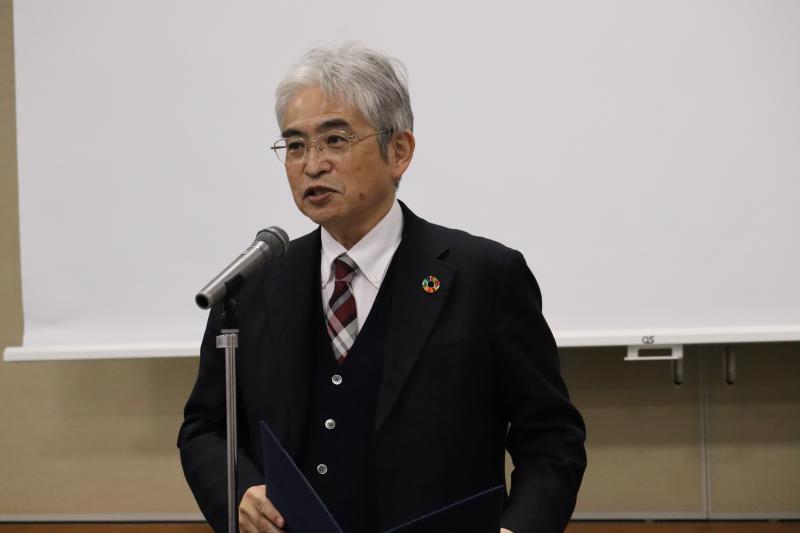シンポジウム後には、同キャンパスで交流会も開催。冒頭、菅理事からあいさつとともに、今後の活動への期待を込めたコメントがありました。その後、菅理事からも長時間のシンポジウム参加への労をねぎらう言葉とともに最優秀発表賞と優秀発表賞の3人に対して表彰状が授与されました。