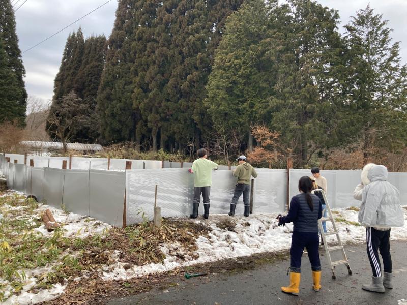 当日は、パンチングメタルの製造を手掛ける松陽産業株式会社(岡山工場:新見市)より、地域貢献および資源の有効活用の観点から提供された、同社の余剰品であるパンチングメタルを活用した鳥獣害対策用フェンスの設置作業を行いました。