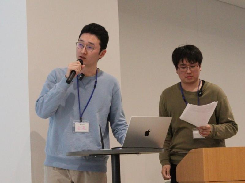 成果報告会では、二期生の5つの学生チームが、プロトタイプの開発や実証の成果、自治体との協働を含む取り組み内容を発表しました。発表テーマは、「畜産の臭気対策」、「晴れの国CANAL・セーフティ」、「論文を基に授業計画を出力するAI『KakerAI』」、「消費者と生産をつなぐ放牧養豚の科学的検証」、「モジュラリティを有した移動ロボットの協調作業のコンセプト開発」です。