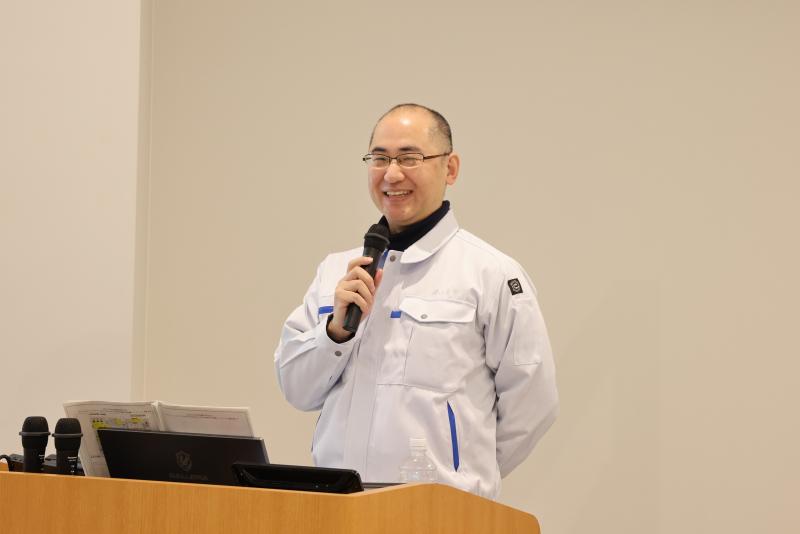 次に文部科学省科学技術・学術政策局参事官(研究環境担当)の髙山勇人参事官補佐より国の目線、日本電子株式会社SI事業戦略本部OI推進部の片桐慎一部長より理化学機器メーカーの目線、本学阿部匡史技術主幹より技術職員の目線で、大学・研究機関等の研究基盤やわが国の研究・イノベーション創出の強化につながる話題提供が行われました。