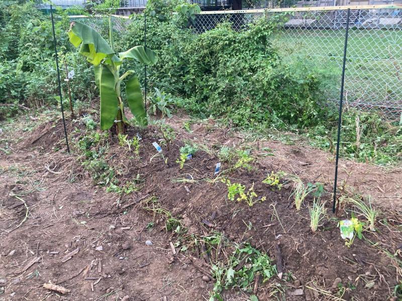 その後、農園デザインの検討を行い、複数の植物を組み合わせた生態系モデルの構築に向けたアイデアを共有。続いて、参加者全員で畝立てに取り組み、一部区画には果樹や苗、種の植え付けを実施しました。特に今回は、おかやまデジタルイノベーション創出プラットフォーム(OI-Start)会員企業である大同塗装株式会社(Daido Coffee Farm)の協力により、同社から株分けを受けたバナナの植え付けも行われました。地域企業との連携により、多様な植物を取り入れた農園づくりがさらに広がりを見せています。