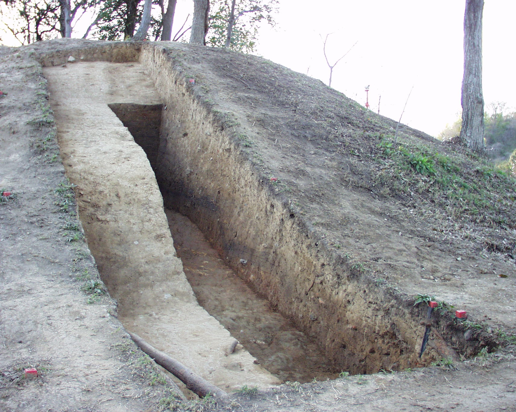 その後、後円部の築造方法を把握するため、トレンチの北壁側に東西6.5m、幅1mのサブトレンチを