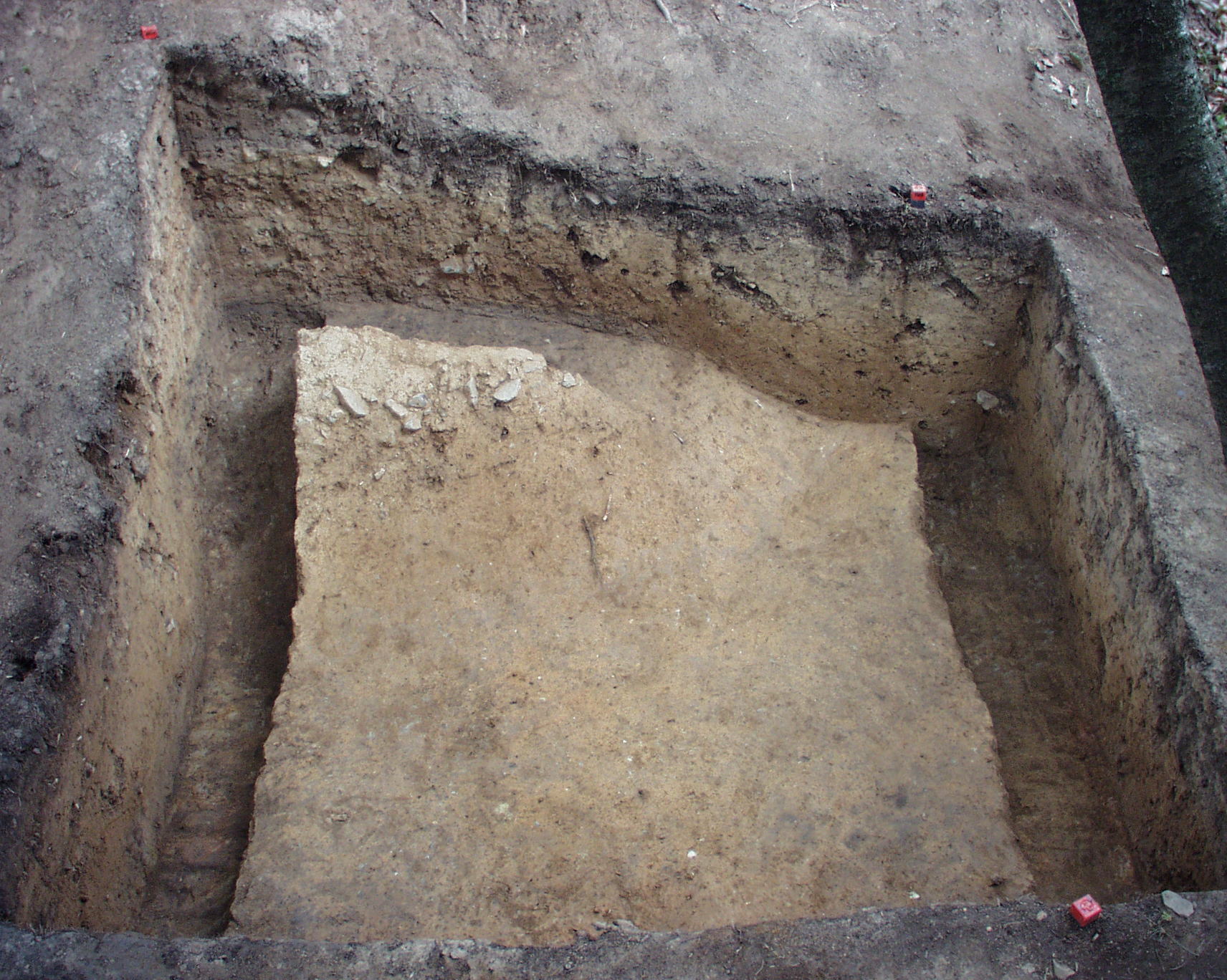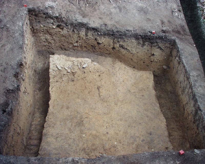 けたことが確認された。地山直上の流土からは、少量の埴輪片や須恵器片とともに後世の瓦や鉄釘