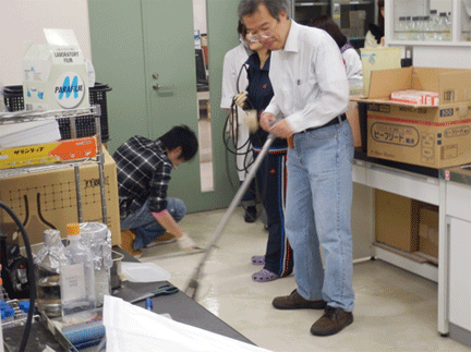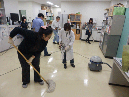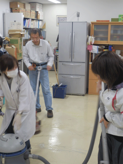 年内の主な業務を終え、ほっと一息の年末のある日、毎年恒例の大掃除を行いました。一年間お世話になった研究室に感謝しながらみんなで大掃除!!