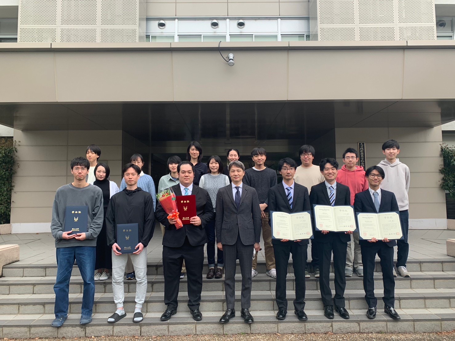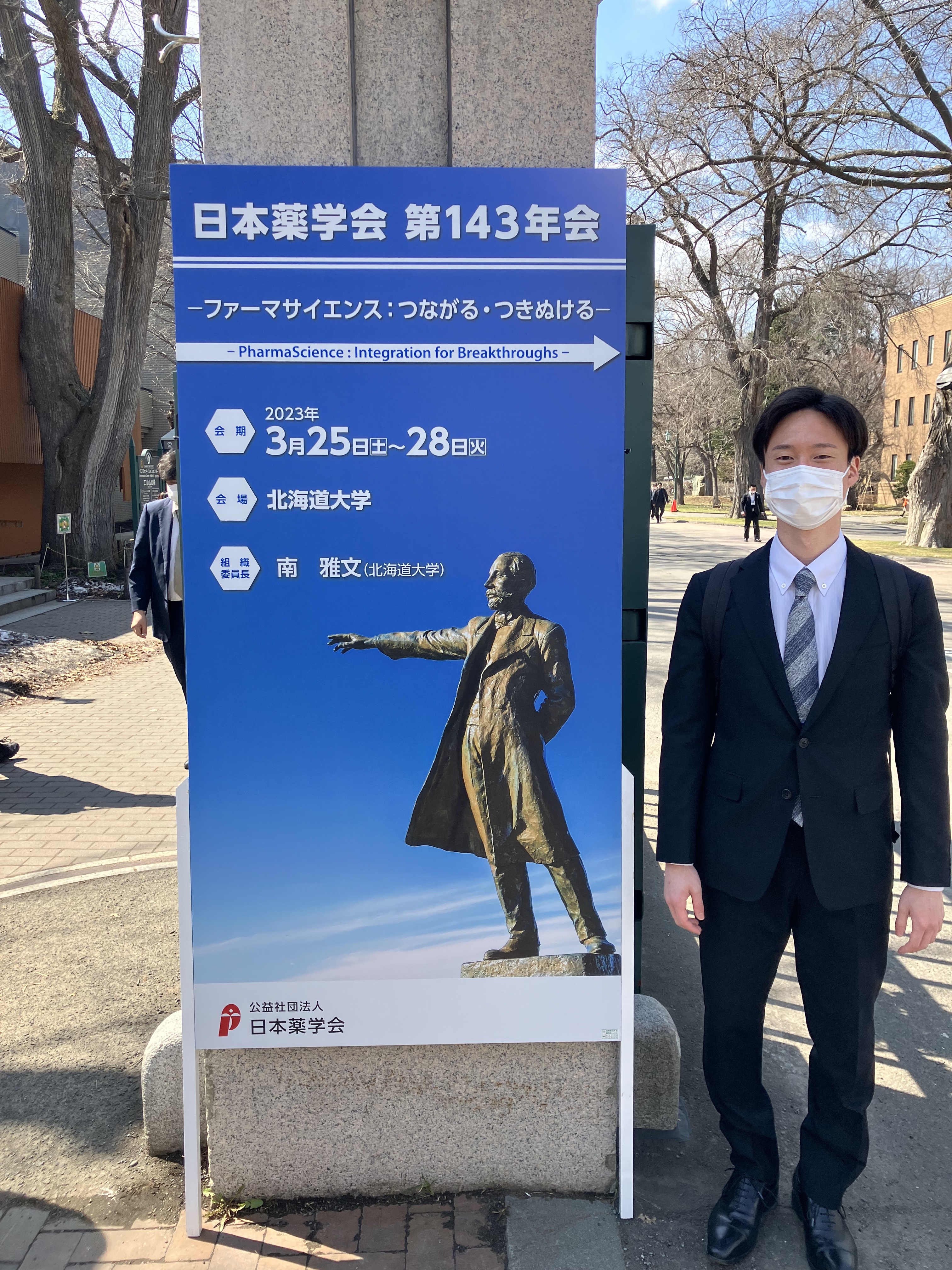 HOME | バックナンバー | 2022年度 2023.3.25-3.28 学会発表 当研究室の黒木さん(D1), 伊藤さん(M1), 伊藤さん(B4), 森谷さん(B4)が 第143回日本薬学会年会 にて発表を行いました. 伊藤さん, 森谷さんが優秀発表賞(ポスター)を受賞しました. 詳細 2023.3.24 学位記授与式 藤河さんと野村さんが修了されました.これからのご活躍をお祈りしております. 2023.2.4 論文投稿 原著論文がnature communications誌に掲載されました. 詳細 2023.1.31 論文投稿 総説がCells誌に掲載されました. 詳細 2022.12.6 論文投稿 原著論文がInternational Journal of Molecular Sciences誌に掲載されました. 詳細 2022.12.1 配属 学部生 二名が配属されました. 詳細 2022.11.30-12.3 学会発表 当研究室の伊藤さん(M1)が, 第96回日本薬理学会年会にて発表を行いました. 詳細 2022.11.12 学会発表 当研究室の三木さん(M2)が, 第142回日本薬理学会近畿部会にて発表を行いました. 三木さんが優秀発表賞を受賞しました.おめでとうございます. 詳細 2022.11.9-11.11 学会発表 当研究室の谷口さん(D3), 藤河さん(D3), 駒井さん(D2)が, 第95回日本生化学会大会にて発表を行いました. 詳細 2022.9.1 論文投稿 総説が日本薬理学雑誌に掲載されました. 詳細 2022.7.7 配属 研究生 一名が配属されました. 詳細 2022.6.30-7.1 学会発表 当研究室の野村さん(D3),森本さん(D2),土田さん(D1),三木さん(M2)が第49回日本毒性学会学術年会にて発表を行いました. 詳細 2022.4.1 配属 博士後期課程(社会人D)二名が配属されました. 詳細 2022.4.1 奨学金関連 黒木さん(D1)と土田さん(D1)がOUフェローシップに採択されました. 詳細 イベントのトップに戻る バックナンバー 2025年度 2024年度 2023年度 2022年度 2021年度 2020年度 ページトップへ