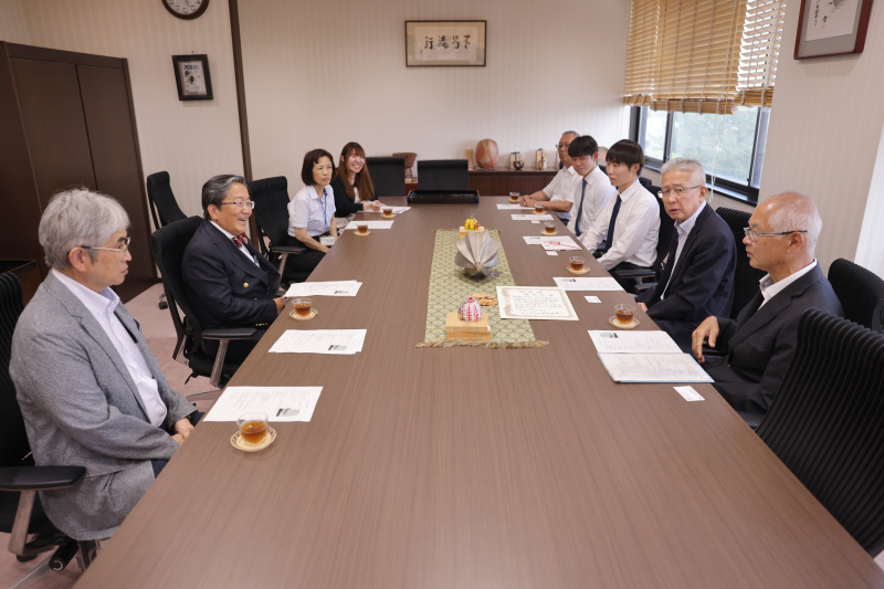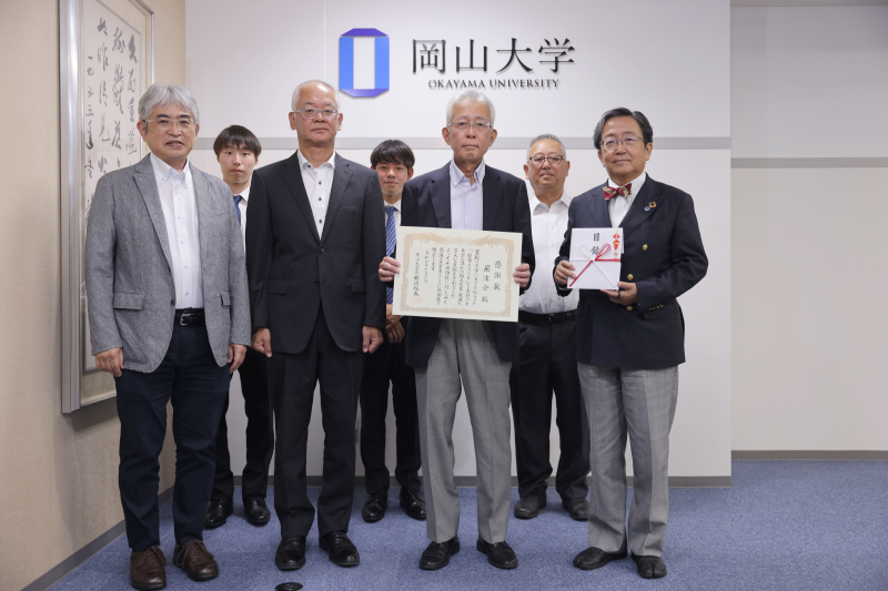在颁奖仪式上,该会的富⽥博会⻑和奥谷修一、帆船部顾问大西胜教授、现役部员中尾刚(法学部4年级)和三田村航季(工学部4年级)等人出席。在赠送感谢信后的畅谈中,介绍了那须保友校长和菅诚治理事(负责教学)、高级副校长至今为止的努力。一边看着漂浮在蔚蓝大海中的该部帆船的照片等珍贵的资料,一边愉快地畅谈。