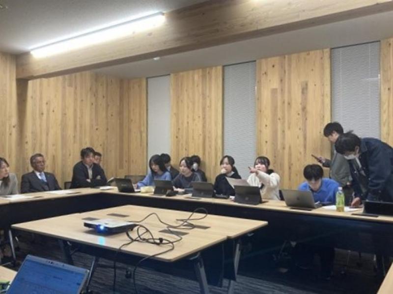 本校在11月10日与冈山县商工会联合会联合,在津岛校区的共育共创公共设施举行推进学生和地区企业CO₂排放量的可视化挑战的启动项目的第2次研讨会。