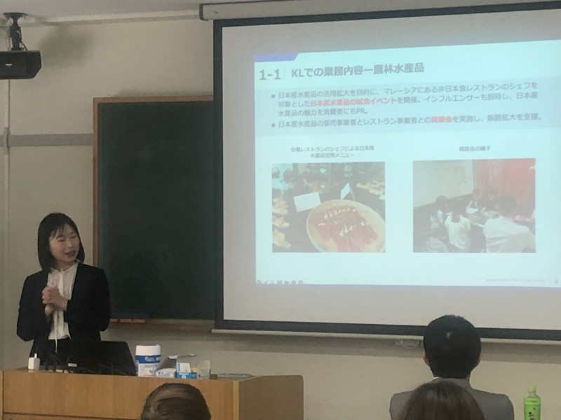 Although many students had previously encountered the name JETRO in other courses, Mr. Wakabayashi’s lecture helped them gain a systematic understanding of the organization’s history, vision, and mission. They also learned about JETRO’s role in supporting foreign direct investment in Japan and assisting Japanese companies in expanding overseas in collaboration with relevant government agencies. In particular, students expressed strong interest in JETRO’s efforts to support exports by small and medium-sized enterprises and to attract highly skilled foreign professionals.