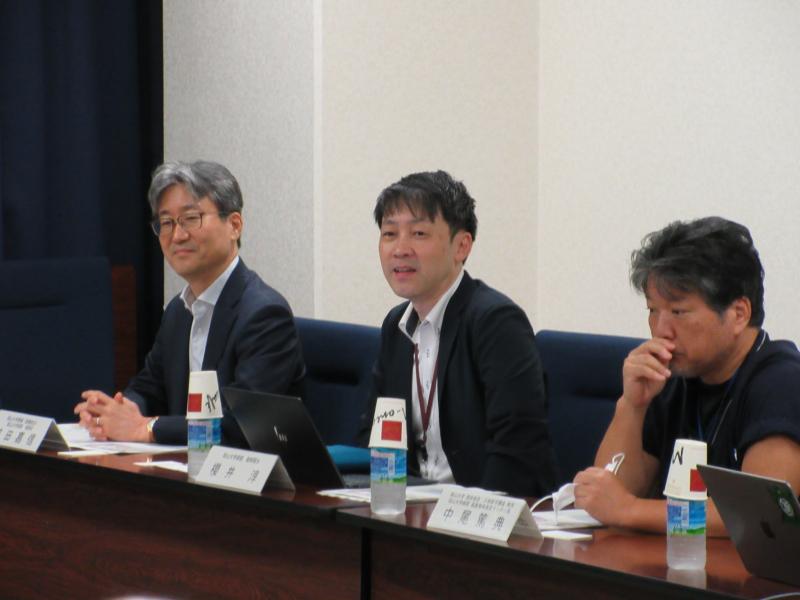 はじめに、前田病院長より歓迎のあいさつがあり、デジタル田園健康特区における取り組みの一環として、学術研究院医歯薬学域地域医療DX推進講座の上田浩平助教(特任)が、岡山大学病院で実証調査を行った「救急救命士による病院前超音波」について、これまでの経過と今後の検討状況を報告しました。続いて、櫻井副病院長より「岡山県内での医療DX推進に向けた状況」について説明があり、活発な意見交換が行われました。