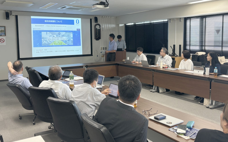 本学総合技術部は、8月29日、長岡技術科学大学を訪問し、遠隔操作機器の見学と文部科学省「地域中核・特色ある研究大学強化促進事業(J-PEAKS)」採択各大学との情報交換会を行いました。会には長岡技術科学大学、千葉大学、大阪公立大学、九州工業大学の各技術部門の関係者が参加。本学からは、総合技術部の田村義彦部長、堀格郎課長、堀金和正サイテックコーディネーター、飯田雄司技術職員が出席しました。