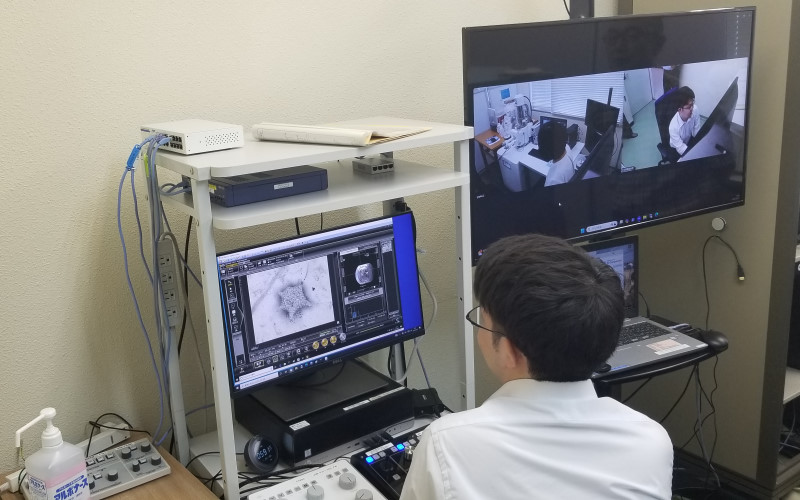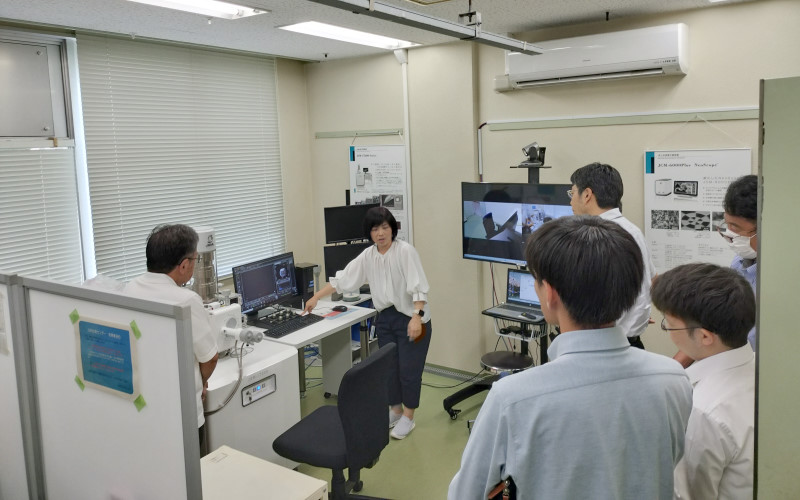 長岡技術科学大学分析計測センターでは、顕微鏡やXRD装置を含むほぼすべての共用機器に遠隔操作を可能にする中間PCが設置されており、実際にSEMやEPMAを用いた遠隔操作を体験しました。VPN接続やZoomを活用した実演を通じ、操作性や運用上の課題について理解を深めました。
