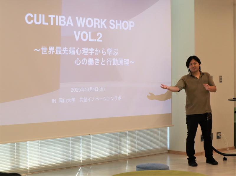 本ワークショップは、世界最先端の心理学から心の働きと行動原理を学ぶことで、キャリア形成や日々の人間関係、学習のモチベーションに役立てることを目的としています。内閣府「地域中核大学イノベーション創出環境強化事業」の一環として実施したもので、Corvus Securitas Inc.(岡山大学発ベンチャー企業、DXSUNパートナー企業)、DXサンライズおかやま(DXSUN)、おかやまデジタルイノベーション創出プラットフォーム(OI-Start)が共催しました。