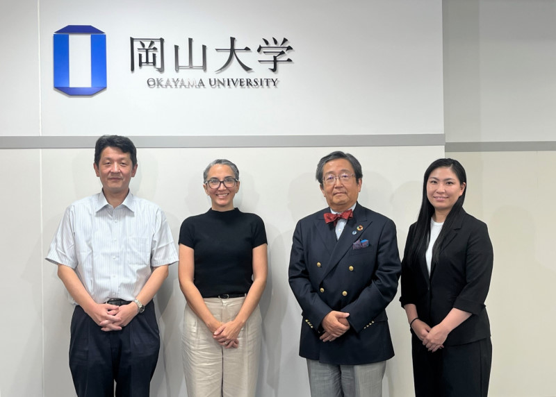 10月7日、本学と国連貿易開発会議(UNCTAD)が共同で運営する2025年度「途上国からの若手女性研究者のための共同研究・研修コース:Young Female Scientist Programme in Japan」により来日した若手女性研究者: Lucia Rivadeneira Barreiroさん(マナビ工科大学講師・エクアドル出身)が那須保友学長を表敬訪問しました。表敬訪問には、Luciaさんの受け入れ教員である学術研究院環境生命自然科学学域(工)の太田学教授が同席。Luciaさんの経歴や研究内容等の紹介の後、Luciaさんの研究テーマである生成AIについて活発な意見交換が行われました。那須学長からは、「プライバシー保護などの課題がある一方で、生成AIは今後ますます発展が期待される分野であり、研究成果を楽しみにしています」とのコメントがありました。