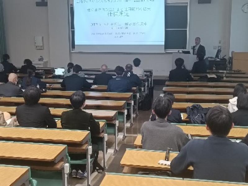 冒頭、京都大学生存圏研究所の五十田博教授から、CLTパネル工法の仕様規定に関する講義の後、近畿大学の福本晃治教授から、「CLTの新しい使い方」と題した講義の中で最近の中大規模CLT木造建築の紹介がありました。最後に、京都大学大学院の小見山陽介講師から、「国内外の動向」と題したCLTを活用した国内外の建築物に関する講義がありました。