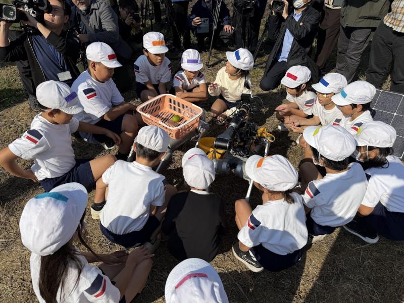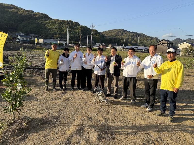 14日には、義務教育学校寄島学園の3年生15人が見学に訪れ、畑を駆け回るロボットの動きに大きな歓声が上がりました。児童からは「レモン以外の野菜にも使えたらいい」、「重い荷物を運べて便利だと思う」などの声が聞かれ、地域の次世代にロボットとスマート農業技術への興味を育む機会となりました。