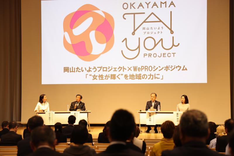 「岡山たいようプロジェクト」は、岡山を“住みたい・働きたい地域”にするため、若者・女性の定着や多様な働き方を推進する地域連携プロジェクトです。本シンポジウムは、女性のキャリア形成や多様な働き方について男女が共に議論し、地域の女性活躍と多様性を高めて“選ばれるまち岡山”をめざすことを目的に開催されました。