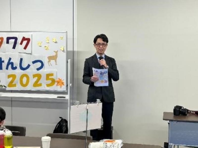 医学系技術課の玉田祐里技術専門職員は、「CMA-Okayama主催『⼦ども向けワクワク実験室2025』に初めて参加し、星箱づくりを担当しました。土星などの星が印刷された箱の展開図を切って組み立て、光を入れて暗室で観察すると、子どもたちは「光った!きれい!」と大喜び。ほかにも身近な科学の実験が並び、みんなが夢中になる姿が印象的でした。この体験が科学への興味につながれば嬉しいです」とコメント。また、総合技術部の本部長である佐藤法仁副理事・副学長・上級URAは、「子どもたちのワクワクドキドキを育むことに携われたことに喜びを感じます。技術職員の活動は多岐にわたりますが、対象となる年齢層もさまざまです。コミュニケーション能力を磨く点においても本活動は重要だと思います。今後もお気軽に本活動にお声掛けください」とコメントしました。