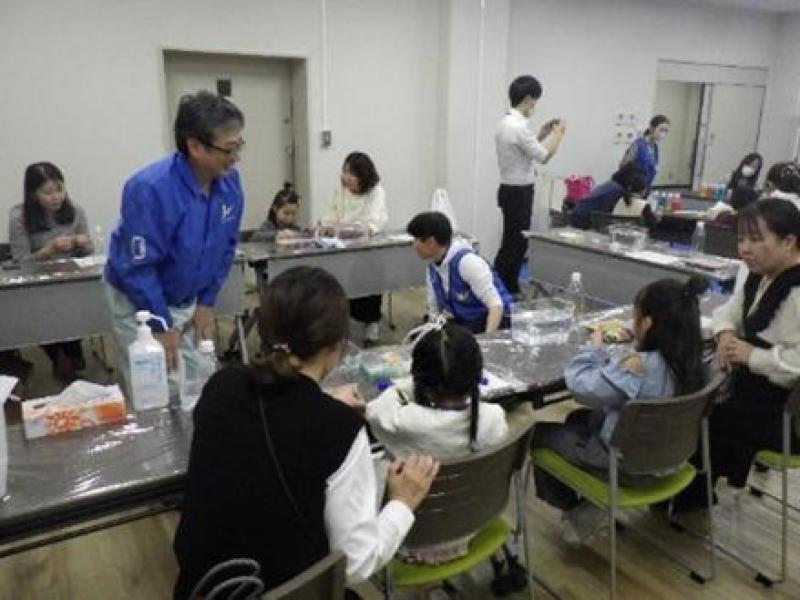 当日は、開会に先立ち、CMA-Okayama専門部会(医療人材育成連携) 森実真議長(岡山大学病院副病院長)と総合技術部 田村義彦部長よりあいさつがあり、各実験テーマを担当する技術職員の紹介の後に実験に取り組みました。実験テーマは、昨年度大人気だった「スライムで遊ぼう」、「入浴剤を作ろう」に加えて、「星箱を作ろう」、「浮沈子を作ろう」の4テーマを実施しました。小学生を中心に18人の子どもたちとその家族が参加し、グループに分かれて順番にすべてのテーマを体験しました。⼦どもたちはどのテーマも真剣な表情で取り組み、ワクワクする実験を通して身近な科学に触れました。会場は笑顔にあふれ、参加者の和やかな親睦の時間となりました。