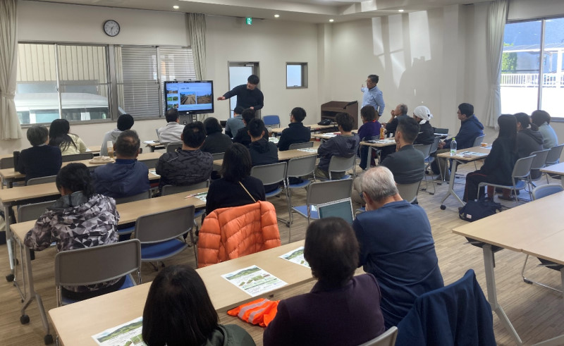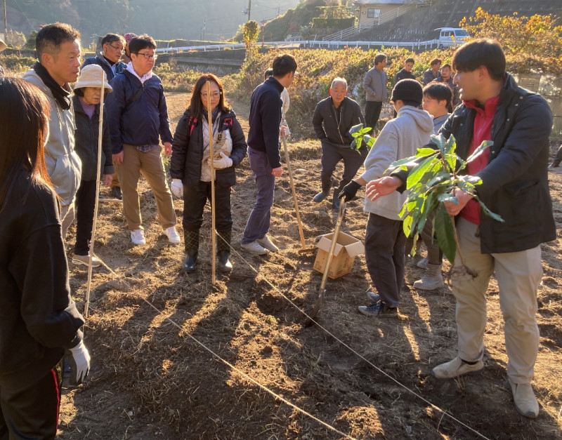 三好市は世界農業遺産に認定された美しい棚田の景観を有し、かつて豊かな農業文化が息づいていました。しかし、現在では多くの耕作地が小規模に分散し手入れが行き届きにくい状況であり、その再生が地域の大きな課題となっています。一枚一枚の耕作面積が小さいことは、多種多様な作物を組み合わせて育てるシネコカルチャー(Synecoculture/協生農法)との親和性が高いと考えられ、本取り組みにつながった経緯があります。また、みかん畑の樹冠下で葉物野菜などを栽培できないかといった地元のニーズも、出発点となりました。今回のワークショップは、本学の取り組みに関心を寄せていただいた株式会社MOAIとの共同で企画したものです。同社は、エネルギー×資源循環に特化した技術開発を核に、日本から世界へ持続可能なビジネスモデルの構築を目指しており、地域資源活用の新たなモデルづくりに向けて本連携が実現しました。