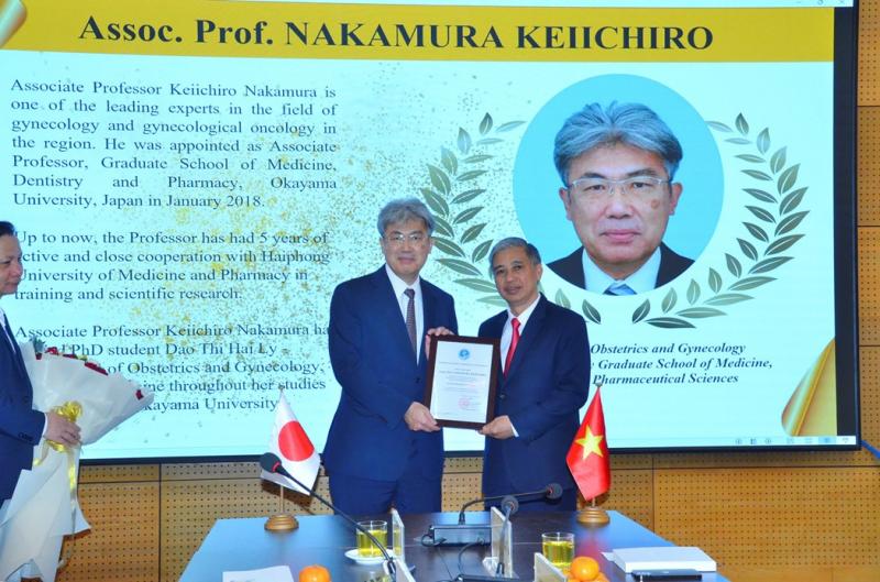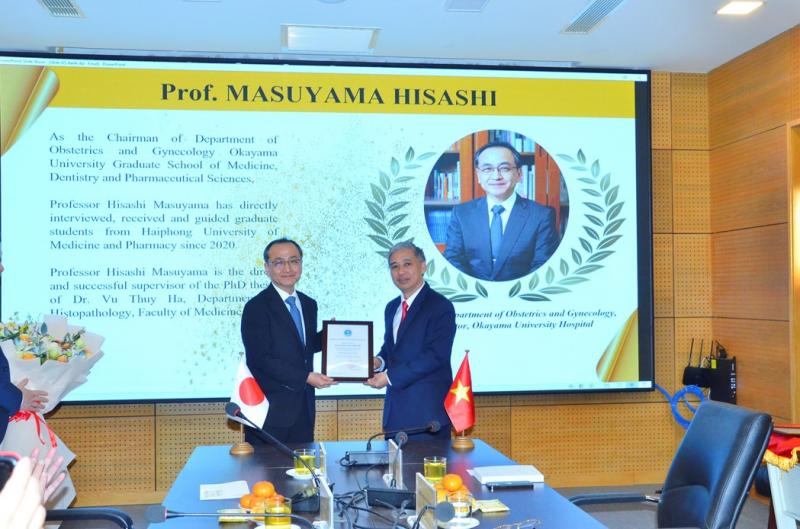 本学と大学間協定を結ぶベトナム・ハイフォン医科薬科大学で11月28日、名誉教授授与式が行われ、学術研究院医歯薬学域(医)産科・婦人科学の増山寿教授と中村圭一郎准教授が名誉教授の称号を付与されました。