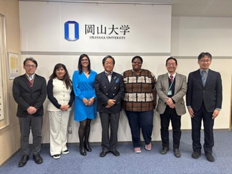 12月10日、本学と国連貿易開発会議(UNCTAD)が共同で運営する2025年度「途上国からの若手女性研究者のための共同研究・研修コース:Young Female Scientist Programme in Japan」により来日した若手女性研究者:Vivian Philemon Mushiさん(タンザニア出身・ムヒンビリ健康科学大学公衆衛生・社会科学部寄生虫学・医用昆虫学科助教)、Olga Alejandra Zamora Jerezさん(グアテマラ出身・グアテマラ・バジェ大学研究所バイオテクノロジー研究センター所長、上級講師)、Katherine Ivette Calderón Mayoさん(ぺルー出身・FARVET社研究開発部門研究員、国立サン・マルコス大学保健科学プログラム博士課程在籍)の3人が那須保友学長を表敬訪問しました。表敬訪問には、若手女性研究者それぞれの受入教員である学術研究院環境生命自然科学学域(農)の畑生俊光教授、学術研究院環境生命自然科学学域(理)の髙橋卓教授、学術研究院医歯薬学域(医)の本田知之教授が同席。那須学長は、本プログラムの趣旨および女性のエンパワーメントの重要性について説明し、各国におけるジェンダーギャップの現状や課題について若手女性研究者と意見交換を行いました。また、若手女性研究者および受入教員からは、現在取り組んでいる研究内容や今後の展望について紹介がありました。