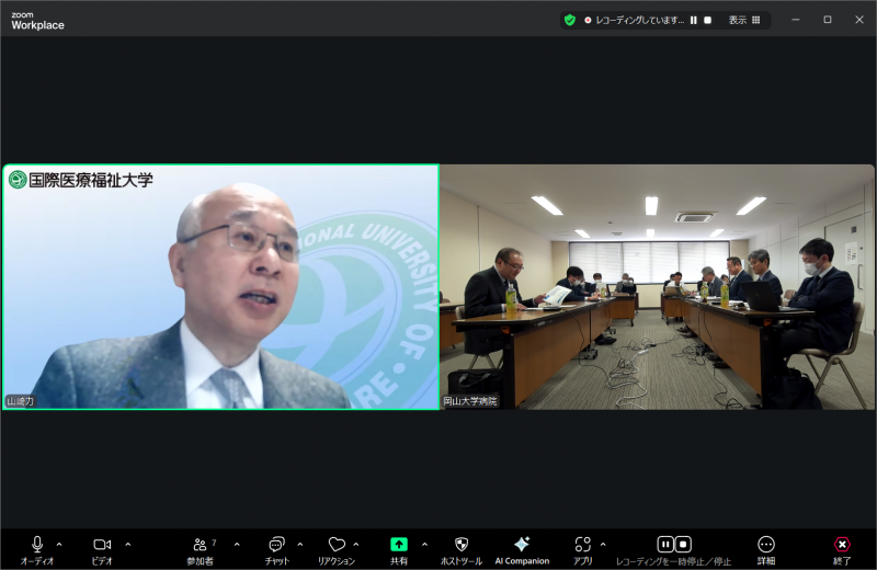 本学は2025年12月22日に、令和7年度の岡山大学橋渡し研究支援拠点外部評価委員会を、鹿田キャンパスにおいてオンラインとのハイブリッド形式で開催しました。