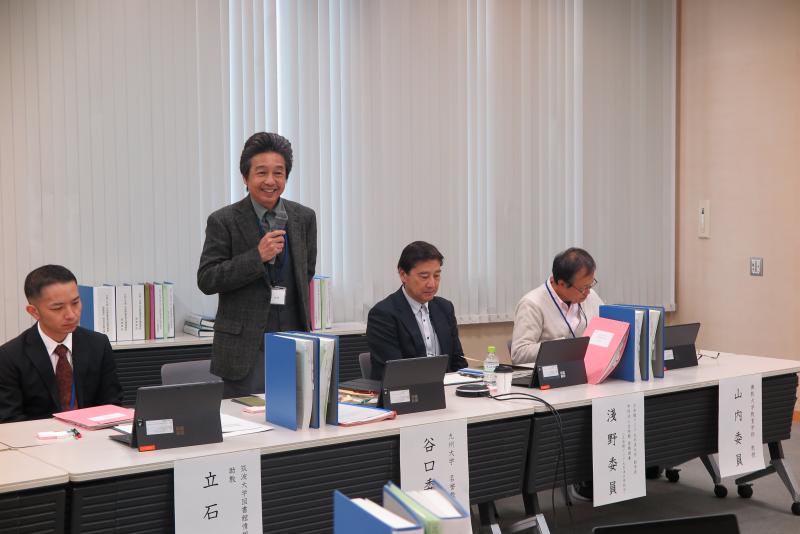 午後の部は、令和8年度に実施される国立大学法人の4年目終了時評価(注)を見据えたものでした。令和4年度から令和7年度までの実績(見込みを含む)及び令和8年度から令和9年度への展開について、菅理事より、入学者選抜、学士課程教育、大学院教育、教学マネジメントの順で各計画4年間の進捗状況説明があった後、計画ごとに十分な時間をかけて質疑を行いました。午後の締めくくりは、外部評価委員6人から所感が述べられました。谷口委員長からは、「これまで構築してきたものを礎石として、いかに継承し、次の発展方策に繋いでいくのかが重要である」とのコメントをいただきました。最後に、菅理事が、外部評価委員に感謝の意を述べ閉会しました。