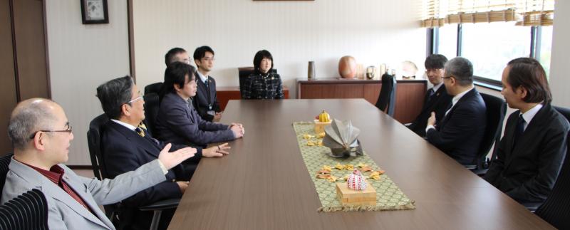 授与式後には、アカデミアにおけるプロジェクトマネジメントの普及や定着について、学部・大学院教育での可能性や国際的な専門資格であるPMPの取得などについて活発な意見交換が行われました。また本年度、本学が採択を受けた日本学術振興会(JSPS)の「研究開発マネジメント人材に関する体制整備事業」ではPMI日本支部と連携していることから事業推進のあり方などについても意見交換が行われました。那須学長からは「引き続き取り組みを強化推進していくとともに、学生を含めた教育、人材育成などにも展開していきたい」との意見がありました。