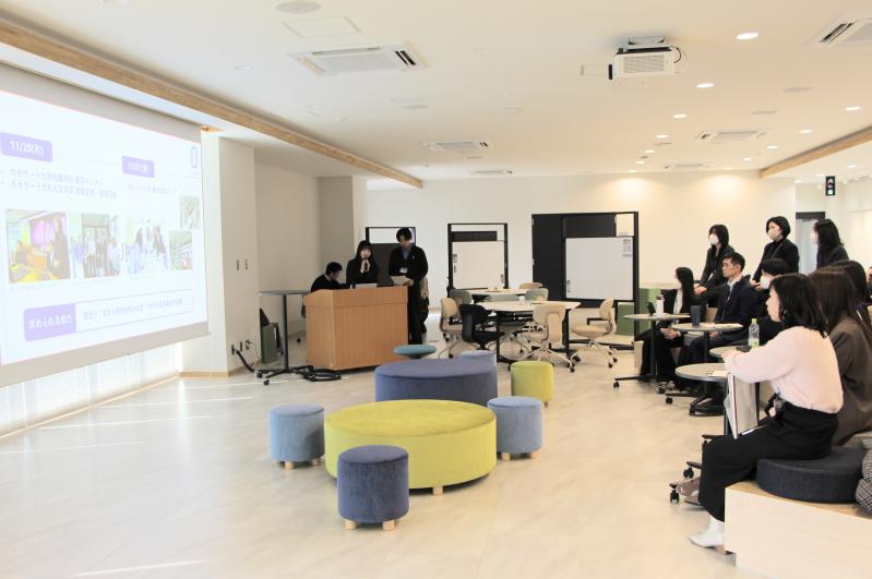 2月10日、ラオス・カンボジアおよびタイの海外業務に従事した職員によるジョブシェア(学内兼業)海外業務報告会を共創イノベーションラボ(KIBINOVE)5階コネクトスタジオを会場にハイブリッド開催しました。本報告会は、本学が2025年8月から導入している学内兼業制度「ジョブシェア制度」により海外業務に従事した職員が業務で得た知識や経験を他の職員に共有するとともに、今後の留学生リクルート等における課題等を考えることを目的としています。報告会には、会場とオンラインを併せて36人の事務職員および教育研究系技術職員が参加しました。