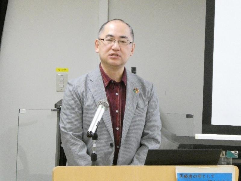 続いて、「医療技術部・検査部門の業務紹介」をテーマに、東影明人技監(医療技術部部長・臨床検査技師長)が「検査部門紹介」について、青江伯規副臨床検査技師長が「遺伝子・ゲノム融合推進検査室の紹介」、飯尾耕治副臨床検査技師長が「微生物検査室の紹介」、信定さおり副臨床検査技師長が「生理検査室の紹介」の演題でそれぞれ講演を行いました。