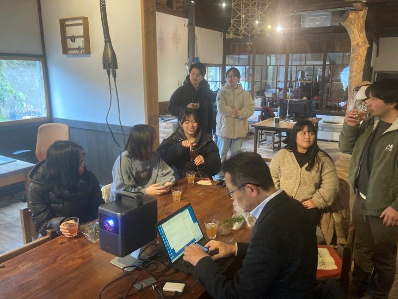 今回の見学ツアーには、本学の経済学部・農学部の学生をはじめ、学術研究院先鋭研究領域(資源植物科学研究所)の山下純助教、産学連携コーディネーター、地域おこし協力隊員に加え、AIエージェントを手掛けるスタートアップ企業の社員、養蜂家や東京農業大学の学生も参加し、産学官民・世代横断のメンバーで知見を深めました。