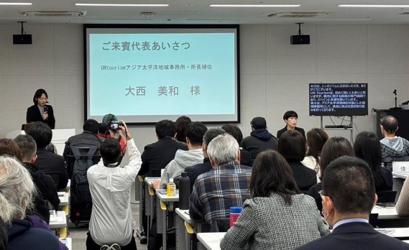 本学ユネスコチェアホルダー横井篤文副学長(グローバル・エンゲージメント担当)による開会あいさつの後、来賓の国連世界観光機関(UN Tourism)アジア太平洋地域事務所大西美和所長補佐からのあいさつがあり、国連では「誰もが参加できる持続可能で責任ある観光の促進」への需要が高まっていることが示されました。この理念を基盤に、シンポジウムではアクセシブルで持続可能な観光やアクティビティのあり方について、地域における官民連携の重要性を共有し、討議を行いました。