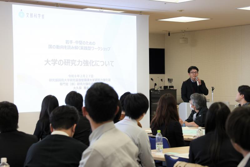 本学は2月26、27日、全国の国公私立大学の若手・中堅の事務職員と技術職員、URA等を対象としたワークショップ「政策を味方に!若手・中堅のための国の動向を読み解く実践型ワークショップ」を対面形式で開催しました。本ワークショップには、全国の国公私立32大学・1高専から計80人以上が参加しました。