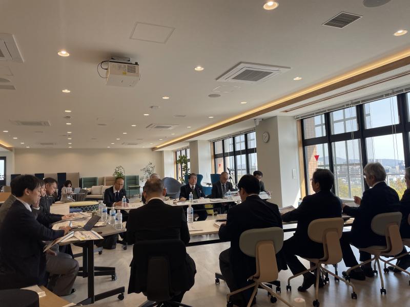その後、5階において意見交換を実施しました。本学からは、J-PEAKSを通じた研究力強化やイノベーション創出に向けた取り組みについて説明し、愛媛大からは、「地域密着型研究センター」など同大学の取り組みについて紹介がありました。