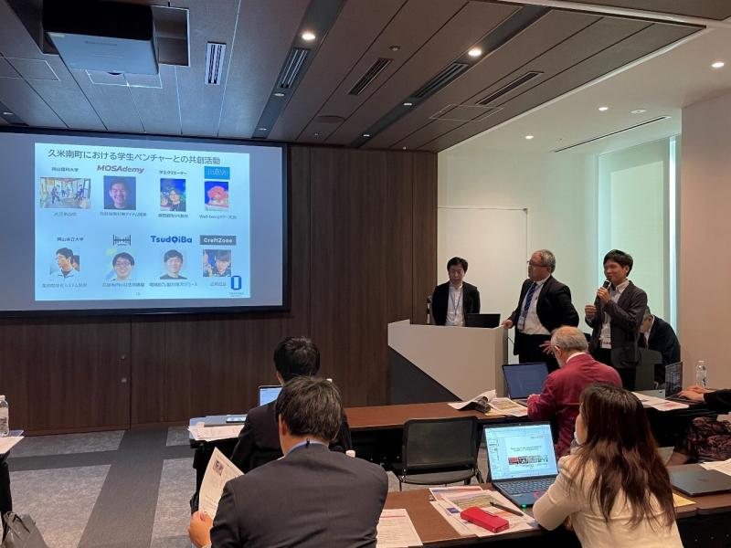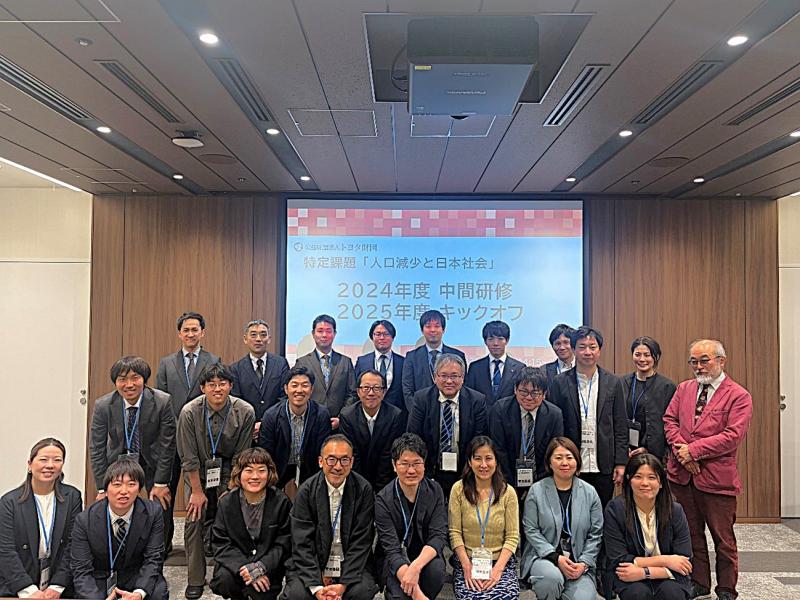 本学教職員が4月16日に東京で開催された公益財団法人トヨタ財団の特定課題「人口減少と日本社会」2025年度助成キックオフ・2024年度助成中間研修に参加し、岡山県久米郡久米南町を舞台としたプロジェクトの中間報告を行いました。本学からは、学術研究院共通教育・グローバル領域の大仲克俊准教授、環境生命自然科学学域の駄田井久准教授、研究・イノベーション共創管理統括部産学連携課の吉田昌彦専門員、舩倉隆央主査の4人が出席しました。