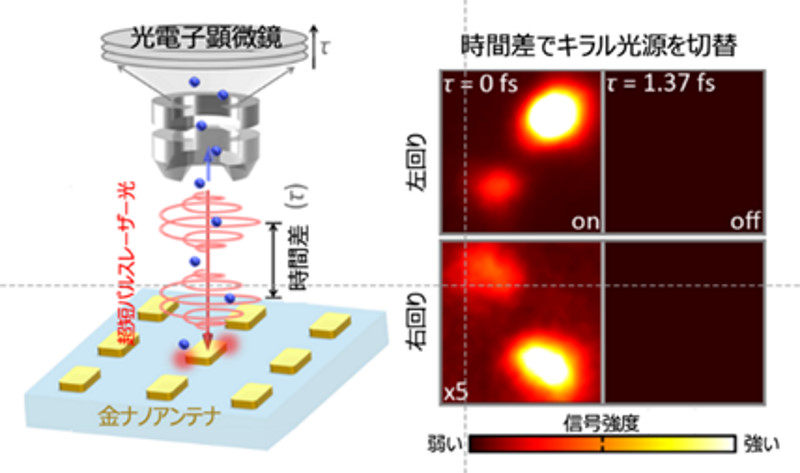 - 光の到達時間差をわずかに変えるだけで、その光源をON/OFFし、右回り/左回り(キラリティ)を切り替えられることを実証しました。