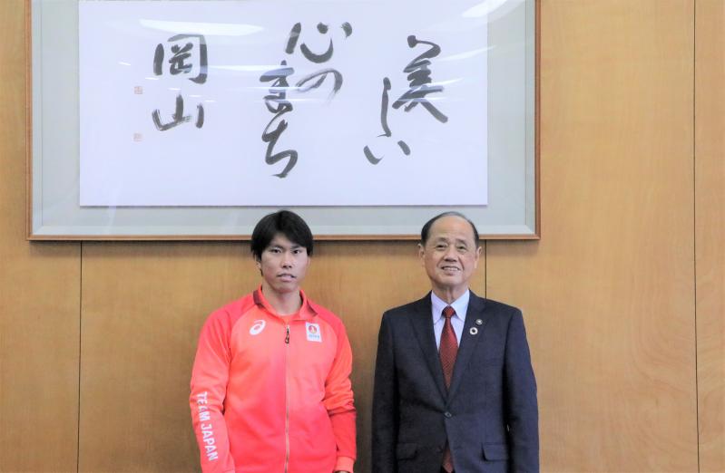 陸上競技部の石本龍一朗さんが岡山市長を表敬訪問