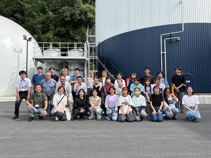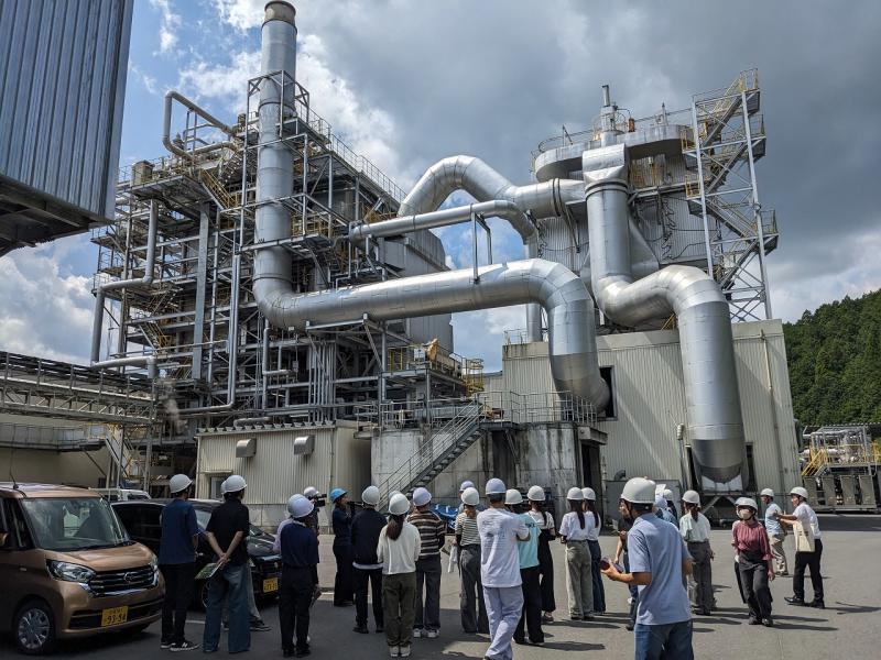 真庭市のバイオマス集積基地とバイオマス発電所、くらしの循環センター(バイオ液肥製造施設)を訪問し、各施設の担当者から説明を受けました。また、昼食時にはバイオ液肥を使って生産されたお米を含むお弁当をいただきました。受講生は、地域資源の活用や循環型社会の実現に向けた工夫を現場の方々から直接学ぶことができました。