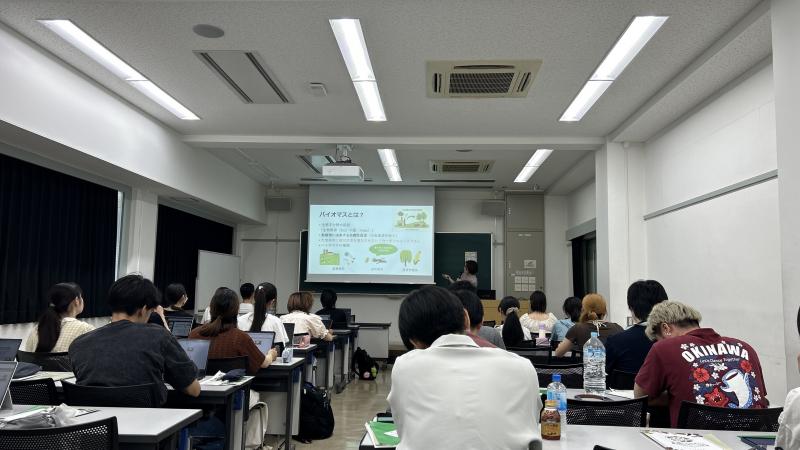 岡山大学にて、真庭市役所担当者からバイオマス事業ならびに生ごみ・し尿の液肥化と循環型農業に関する説明を受けました。また、本田准教授がバイオマスを巡る情勢の変化と課題を説明しました。最後のパネルディスカッションでは、真庭市の取り組みやバイオマス発電の現状について受講生から多くの質問が出され、受講生は持続可能な社会づくりの現状と課題について理解を深めました。