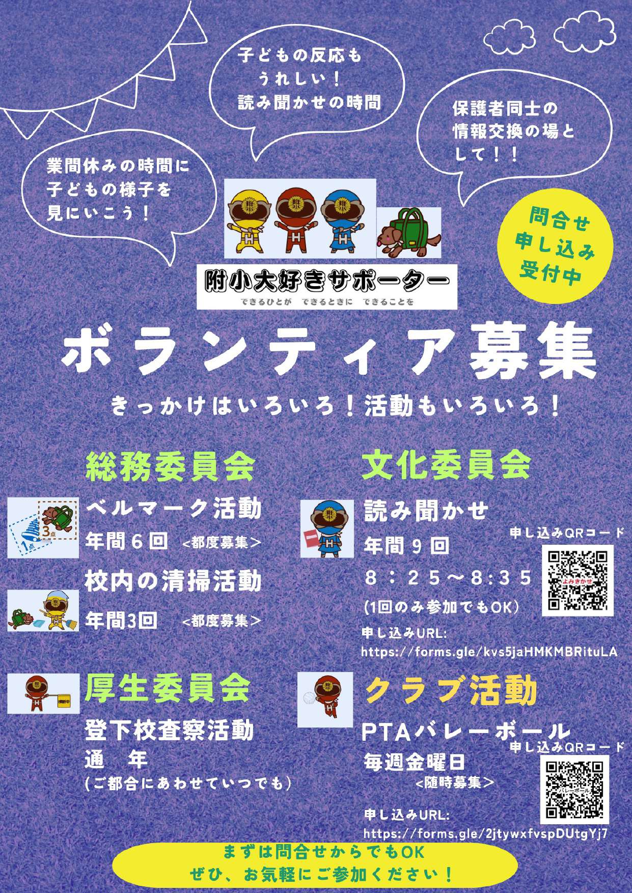 原則、月ごとに決められた学年の保護者に、ご都合に合わせ活動していただくことができます。
