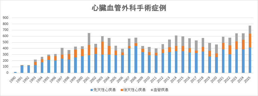 特に,小児心臓血管外科領域では全国有数の症例数と重症度の高い患者さんを診療させていただいてきた実績と自負があります。これらの経験は成人心臓外科領域および血管外科領域にも還元され,既存の治療法に依存しない柔軟な発想でチーム全体が常に活性化されています。各種の低侵襲治療の導入にも注力し,安全で体により負担の少ない治療を提供出来るようになっただけでなく,2021年より岡山県の大動脈緊急症拠点病院となり,急性大動脈疾患の入院・手術を毎日24時間受入れる体制となりました。2023年からは植込型補助人工心臓実施施設としての認定をうけ,成人・小児を問わずすべての患者さんの重症心不全治療を提供できる体制を整えております。大学病院の特色である他疾患の合併症例や重症例の経験も豊富です。また多領域・多種職からなる成人先天性心疾患センターを設け,近隣からはもとより全国から患者さんを受け入れております。