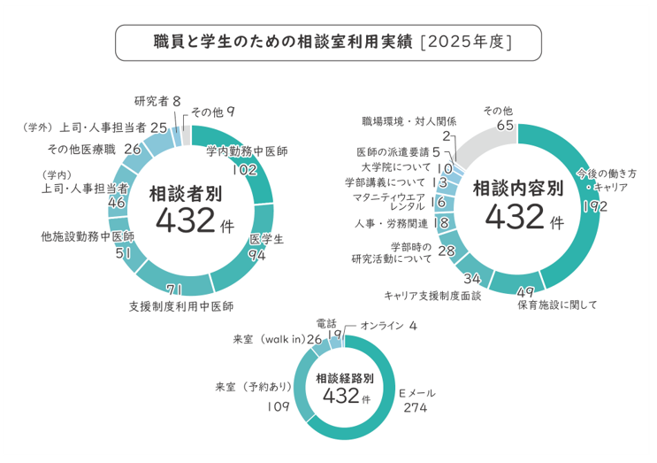 「職員と学生のための相談窓口」 PDF を設置し,毎日の就業や学生生活に関する様々なご相談をお受けしています。専任のキャリアコンサルタントがまずはお話を伺い,ご相談者の状況に応じて,ご本人の同意を得た上で,医師(コーディネーター)や各部門の専門家へお繋ぎしています。