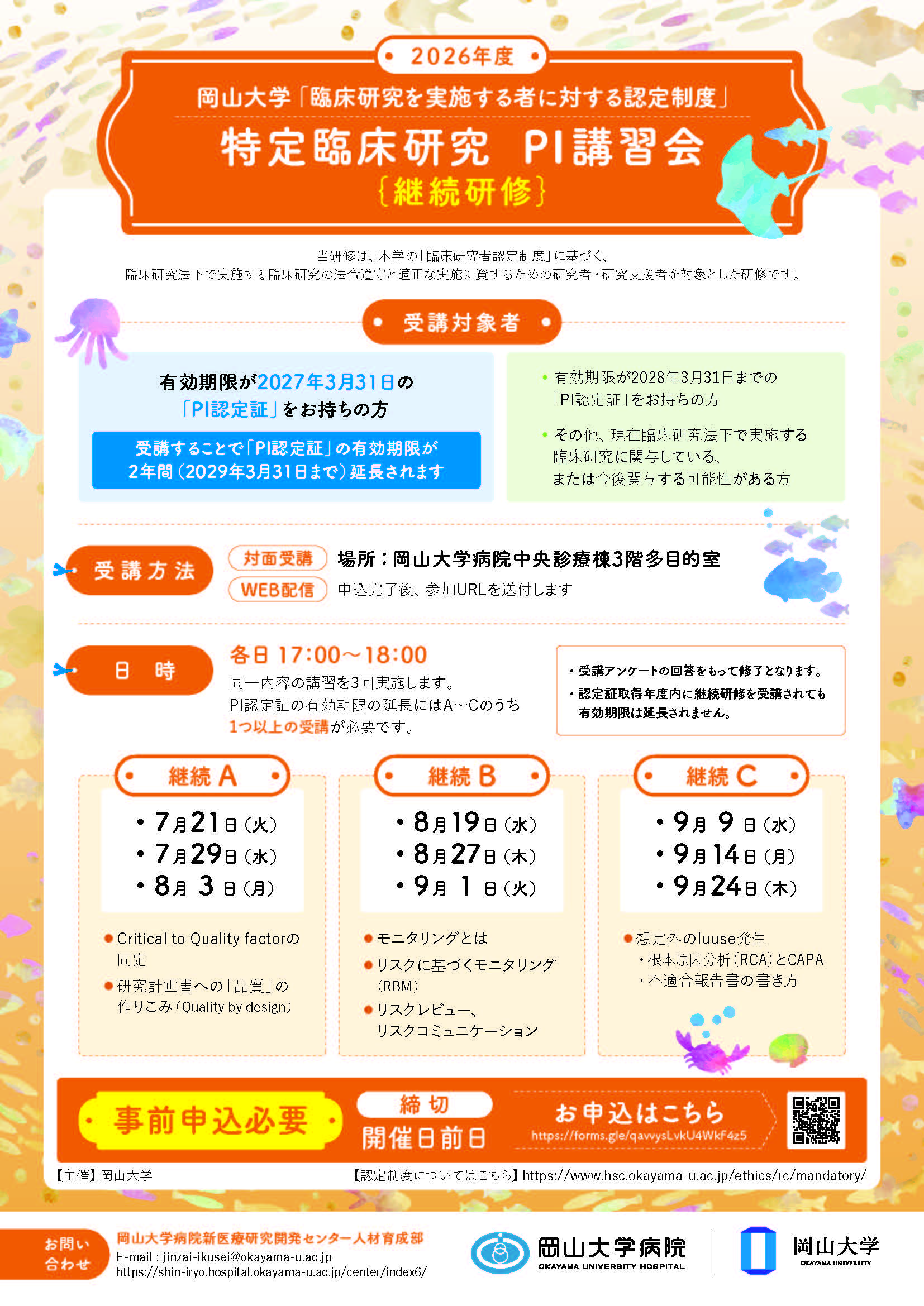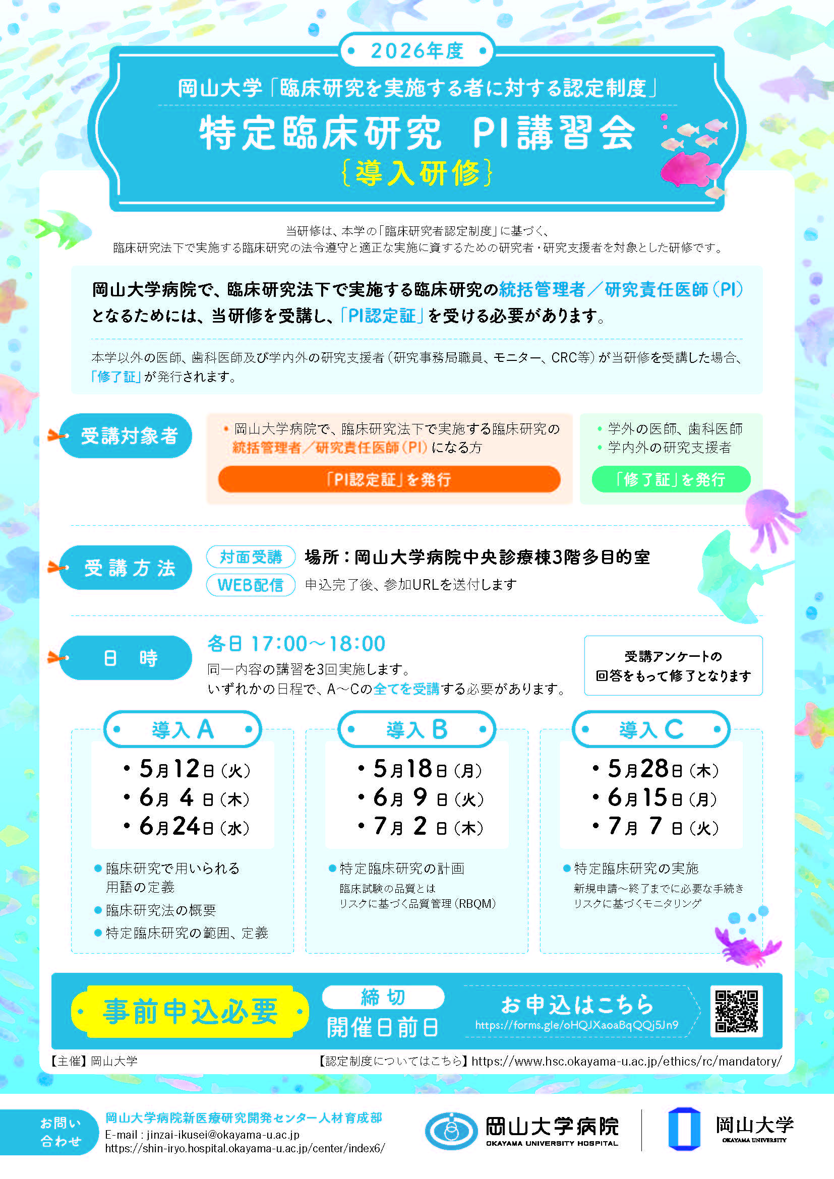 特定臨床研究PI認定制度は,臨床研究法下の臨床研究を実施する研究責任医師向けの研修制度です。
