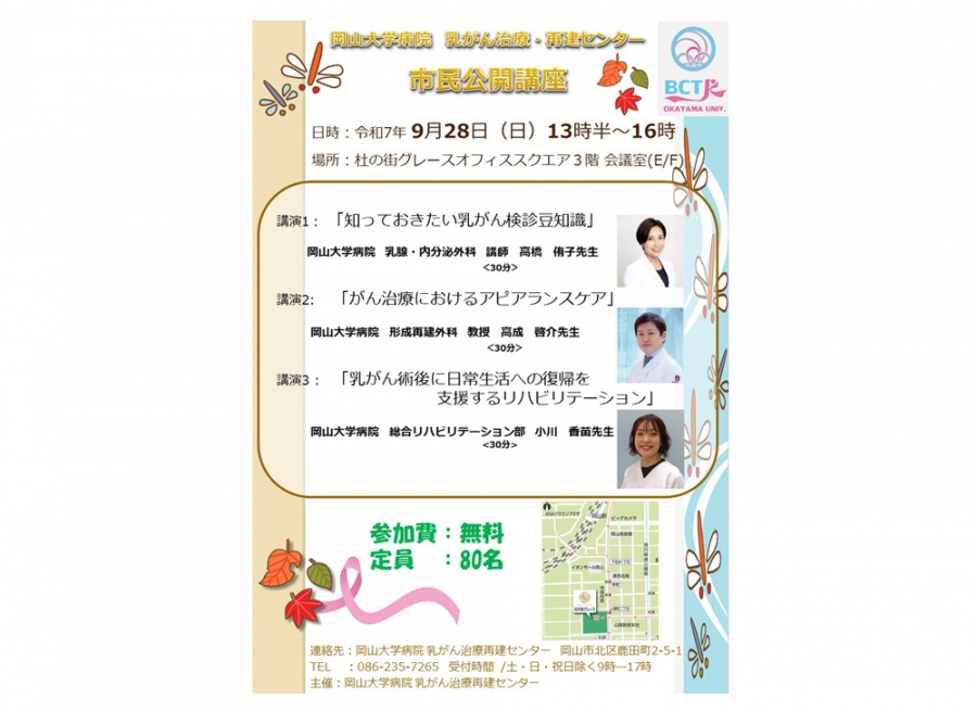 9月28日(日)岡山大学病院 乳がん治療・再建センター 市民公開講座 開催のお知らせ