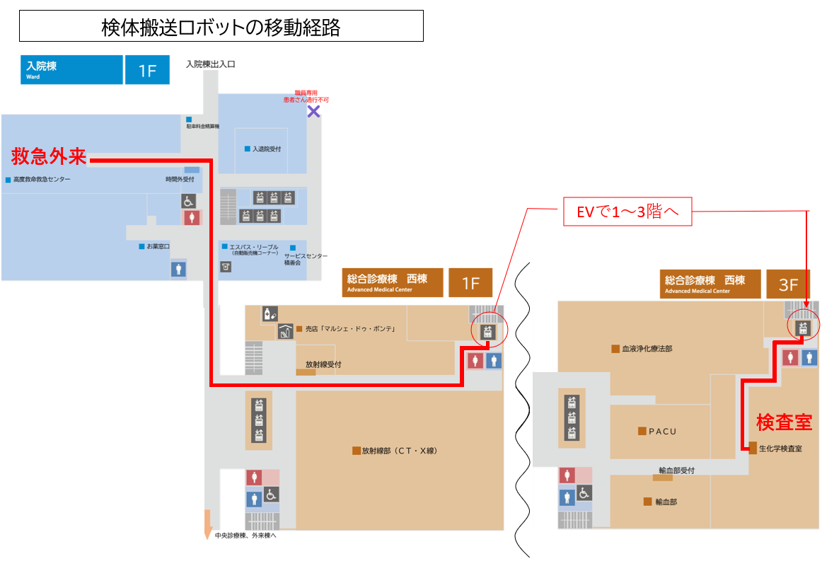 エレベーター乗り降りができる検体搬送ロボットの稼働を開始しました