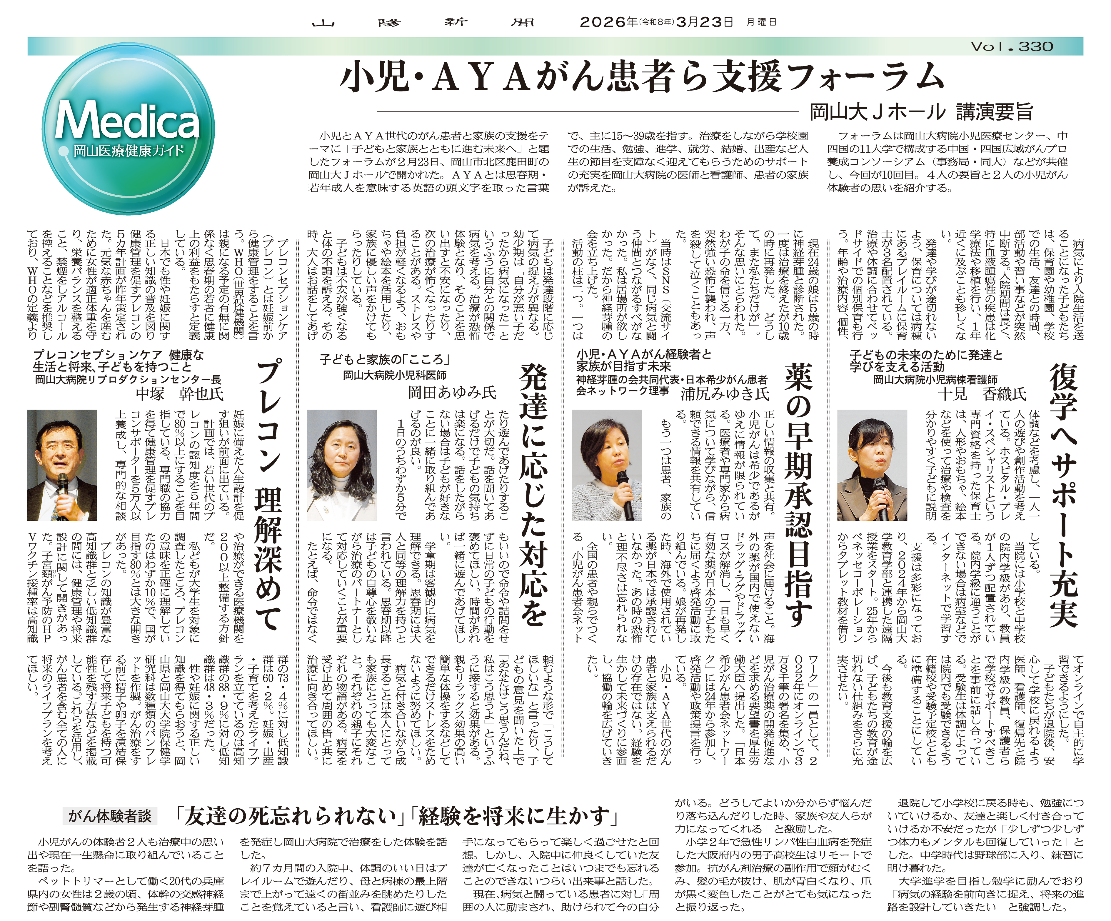 2026年2月23日(月・祝)に開催された「第10回 小児・AYAがんフォーラム in 岡山」について,講演内容の要旨をまとめた記事が,2026年3月23日付の山陽新聞に掲載されました。