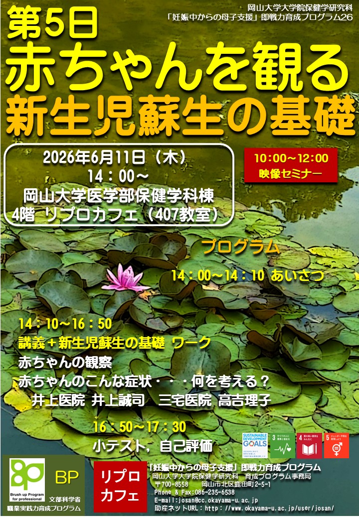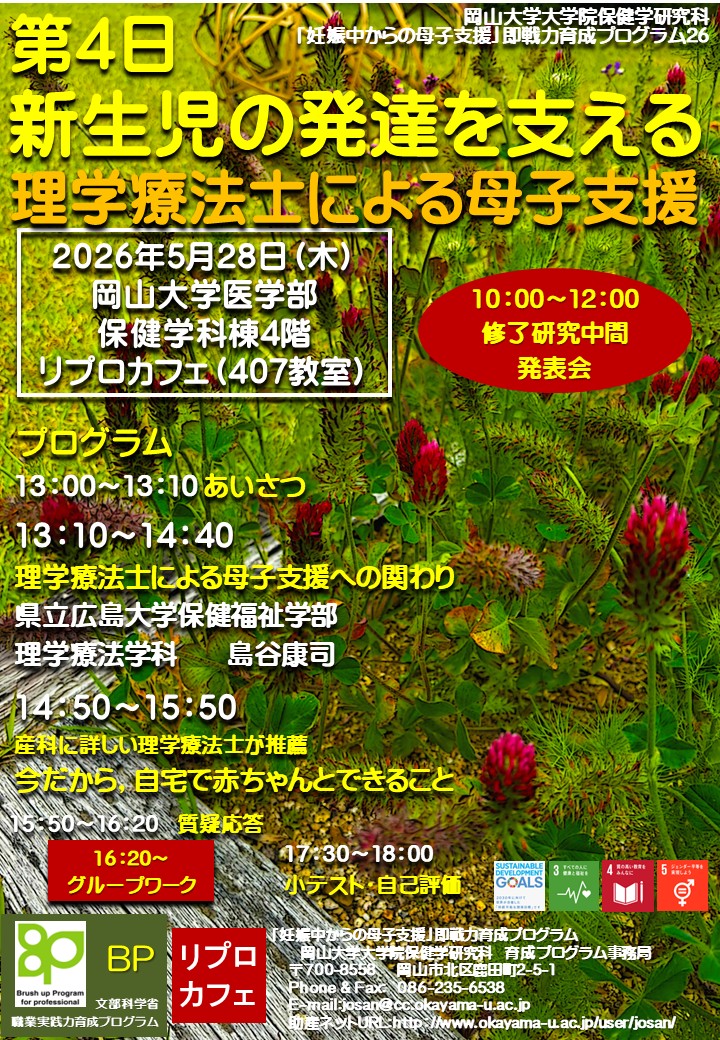 | 05/28(木) | 4 | ★新生児の発達を支える (午前:修了研究中間発表会) |