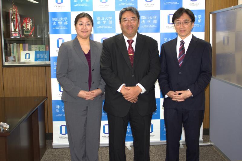 2026年4月1日、塩谷毅(刑法・写真中央)が法学部長に就任し、大森秀臣教授(法哲学・写真右)、濵田陽子教授(民事訴訟法・写真左)がそれぞれ法学部副学部長に就任し、新執行部がスタートしました。