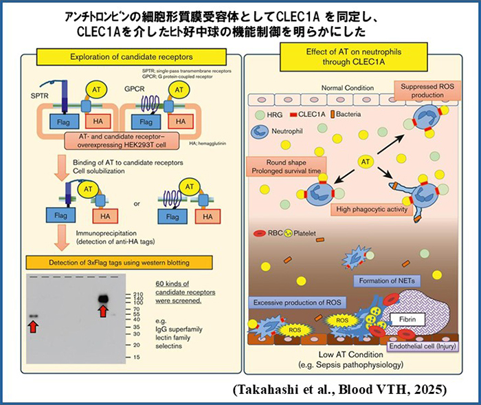さらに、HMGB1と結合性を持ち、敗血症病態で血中レベルが著減する血漿タンパク因子Histidine-rich glycoprotein (HRG) を同定し、その血球細胞と血管内皮細胞の恒常性維持における重要な役割の解析に取り組むとともに、臨床検査法の開発や、生物製剤としての臨床応用に向けての研究を続けています。HRGに関連してプレス発表した研究内容を、上の数枚のパネルにまとめました。